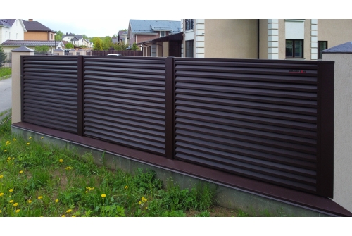 - благодаря защитно-декоративному полимерному покрытию, забор-жалюзи прослужит и сохранит свой первоначальный внешний вид даже спустя длительное время после установки